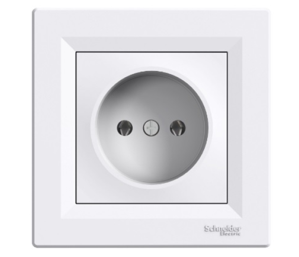 Опис: Розетка без заземлення Schneider Asfora, Біла, призначена для встановлення в стінах або інших поверхнях і використовується для підключення електричних пристроїв.