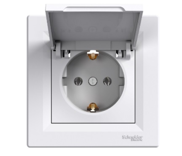 Розетка із кришкою Schneider Asfora, Білий, призначена для встановлення всередині приміщень, забезпечує безпечне з'єднання електричних пристроїв та зручне використання.
