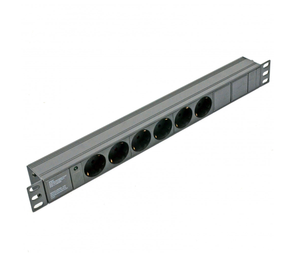 Блок живлення Kingda 19" на 6 розеток німецького стандарту. Має номінальний струм 10А, укомплектований індикатором, не має шнура. Виготовлений у чорному кольорі, займає 1U у стійці.