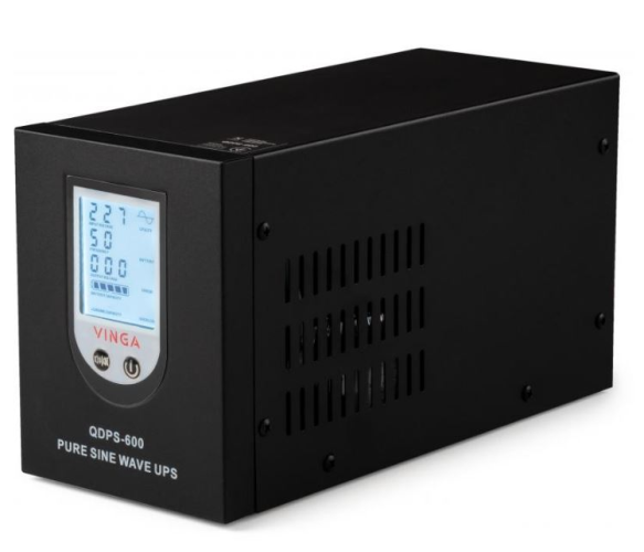 Джерело безперебійного живлення Vinga QDPS-600, має захист від стрибків напруги. Також вбудований стабілізатор напруги, який дозволить вирівнювати значення в межах 145-275 вольт. Користувач може відстежувати показання на цифровому дисплеї. Правильна синусоїда на виході означає, що прилади з імпульсним та трансформаторним навантаженням можуть відмінно функціонувати. Підтримується підключення зовнішніх акумуляторів великої ємності, що забезпечує тривалу автономність.