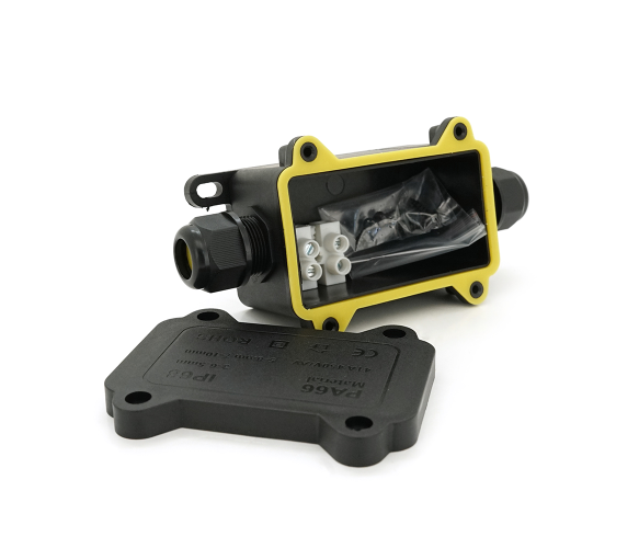 Опис: Водонепроникна коробка CN801 PG9 (4-8мм), призначена для 1-6 контактів, розміром 70 х 40 х 40 мм, зі ступенем захисту IP68.
