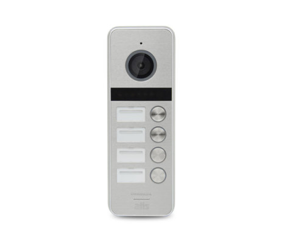 Цветная видеопанель AT-404HD Silver на 4 абонента с высоким разрешением HD 1280x720 и широким углом обзора 120°. Способ установки накладной. Цвет корпуса видеопанели - серебро.