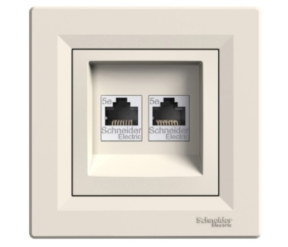 Розетка комп'ютерна Schneider Asfora є подвійною комп'ютерною розеткою в кремовому кольорі. Вона призначена для підключення комп'ютера та інших електронних пристроїв.
