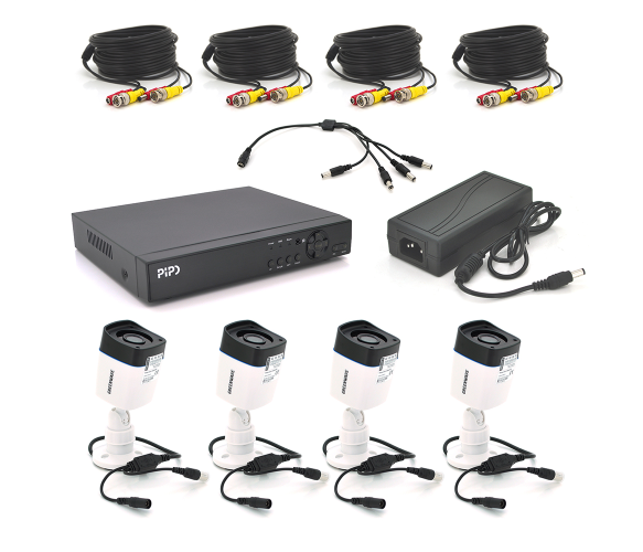 Комплект для самостійної установки в який входить 4 вуличні камери роздільної здатності 5 мегапікселів , мультиформатний відеореєстратор з підтримкою камер високої роздільної здатності та IP . Імпульсне джерело живлення, та кабелю для підключення камер до відеореєстратора по 15 метрів.