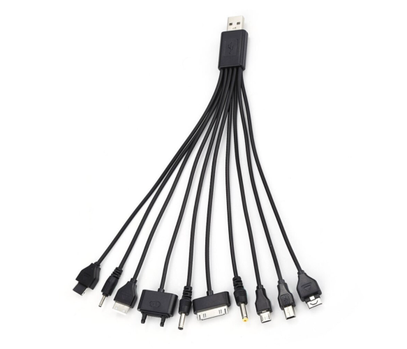 Технічні характеристикиUSB кабель з перехідниками 10 до 1Тип матеріалу: ТРЕКолір: чорнийТип упаковки: ОЕМ
