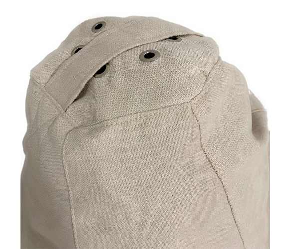 Пуф має ручку для зручного перенесення та обов'язково люверси (відчини зверху) для виходу повітря.