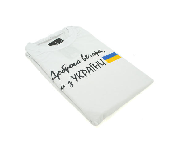 Футболка "Доборого вечора ми з України" - відрізняється високою якістю самого виробу, так і нанесеного принта. Класичні чоловічі футболки з круглим вирізом.