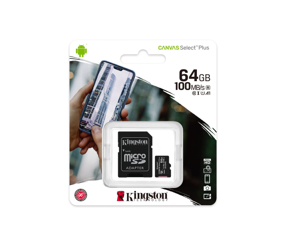 Карта пам'яті Kingston Canvas microSDHC Class 10 UHS-I має високу ємність 64GB і забезпечує швидке читання та запис даних з використанням стандарту Class 10 та UHS-I.