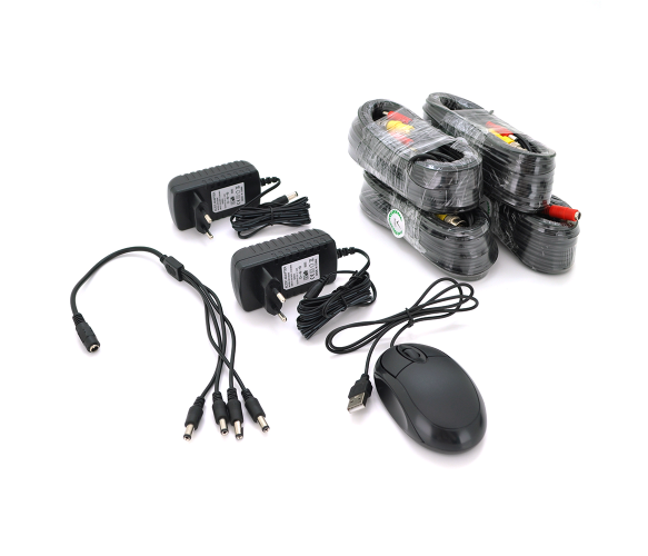 Комплект відеоспостереження для самостійної установки в який входить 4 вуличні відеокамери на кронштейні.