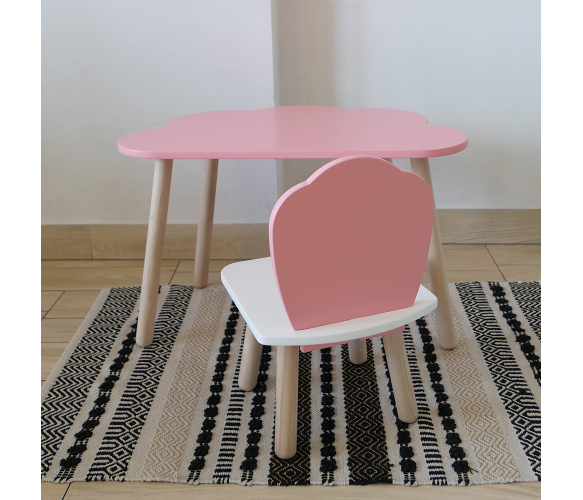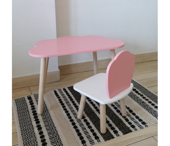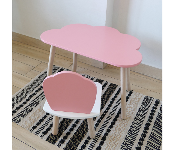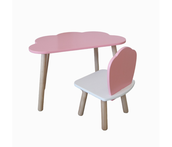 Комплект стіл та стілець дитячий - Voltronic Set Стіл рожевий хмаринка + стілець рожевий Мушля (ФАНЕРА)