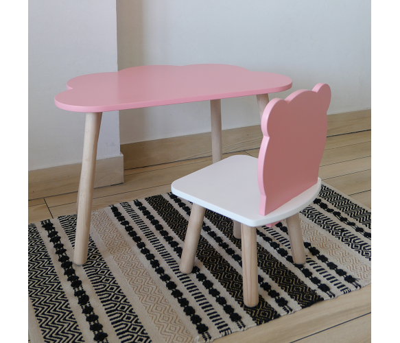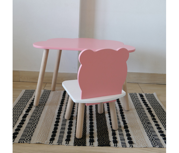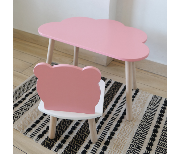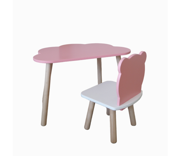 Комплект стіл та стілець дитячий - Voltronic Set Стіл рожевий хмаринка + стілець рожевий Мишка (ФАНЕРА)