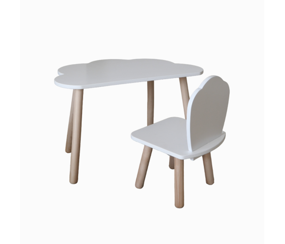 Комплект стіл та стілець дитячий - Voltronic Set Стіл білий хмаринка + стілець білий Мушля (ФАНЕРА)