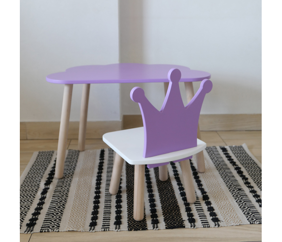 Комплект стіл та стілець дитячий - Voltronic Set Стіл бузковий хмаринка + стілець бузковий Корона (ФАНЕРА)