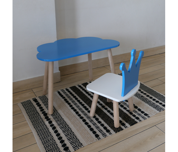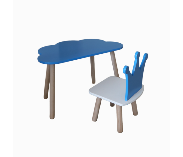Комплект стіл та стілець дитячий - Voltronic Set Стіл синій хмаринка + стілець синій Корона (ФАНЕРА)