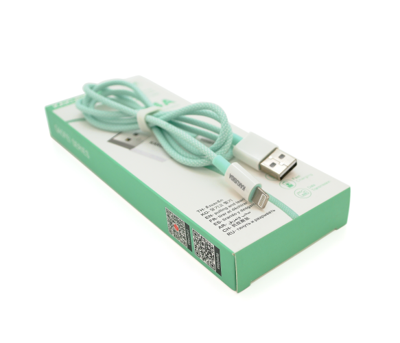 Кабель iKAKU KSC-723 GAOFEI - це розумний зарядний кабель для iPhone у зеленому кольорі, довжиною 1м, зі струмом 2.4A, що поставляється в коробці.