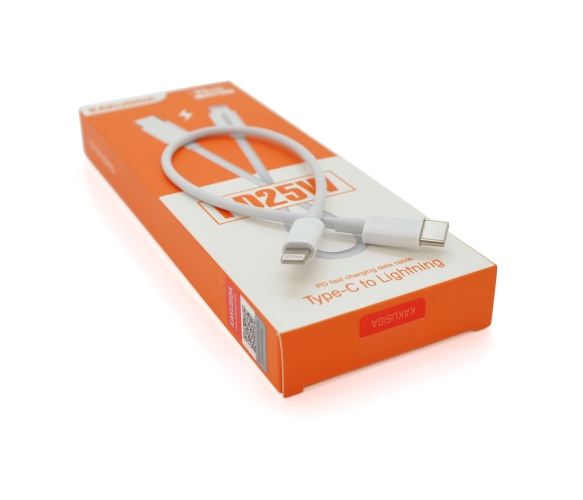 Кабель iKAKU KSC-653 FEIYUE PD100W - це короткий кабель швидкої зарядки (Type-C to Lightning) кольору білого кольору. Його довжина складає 0,25 метри. Кабель упакований у коробку.