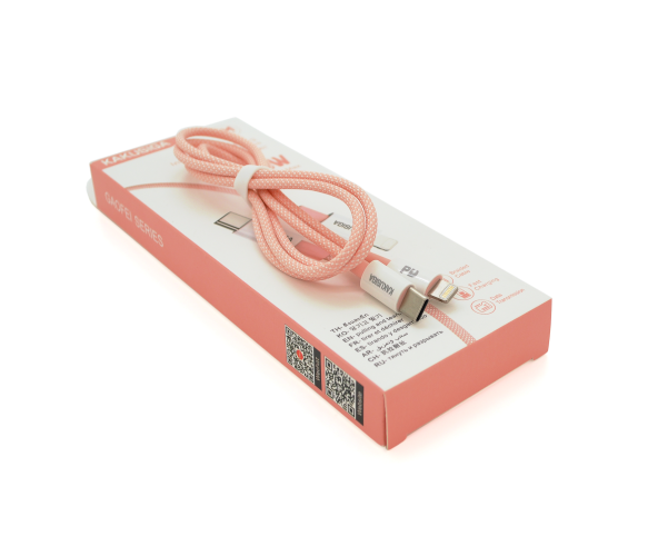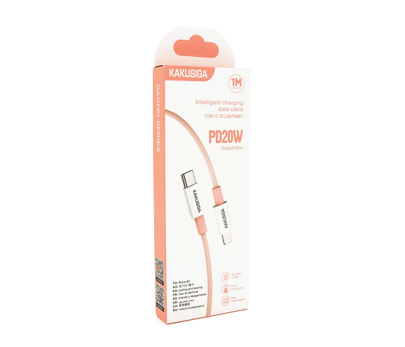 Опис: Кабель iKAKU KSC-723 GAOFEI PD20W - це розумний швидкий зарядний кабель (Type-C to Lightning) в рожевому кольорі, довжиною 1 метр, що поставляється в коробці.