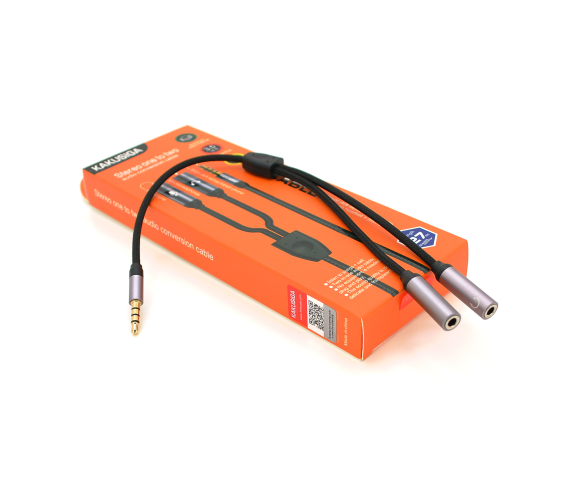 Опис: Розвиток аудіо iKAKU KSC-570 HUIYIN призначений для використання з навушниками та мікрофоном. Він має роз'єм Jack 3.5 мм із 4 контактами (тато), який розгалужується на два роз'єми Jack 3.5 мм із 3 контактами (мама). Пристрій поставляється у круглій коробці.
