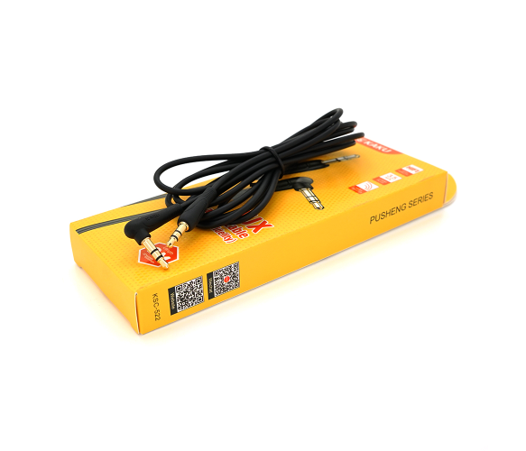 Кабель iKAKU KSC-522 PUSHENG AUX Audio DC3.5 тато-тато 2.0м, GOLD Stereo Jack, (круглий) Black cable, Box,