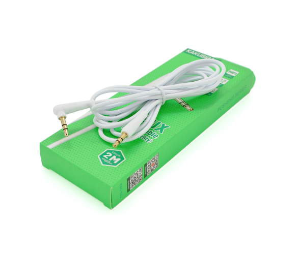 Кабель iKAKU KSC-522 PUSHENG AUX Audio DC3.5 тато-тато 2.0м, GOLD Stereo Jack, (круглий) White cable, Box – це якісний аудіо кабель для підключення пристроїв з роз'ємом 3.5 мм.