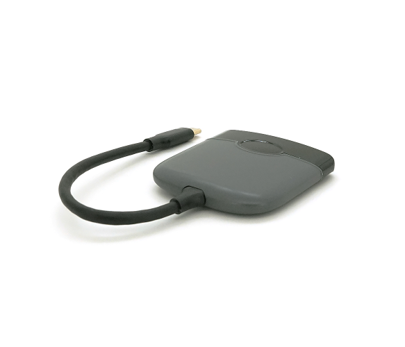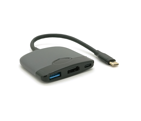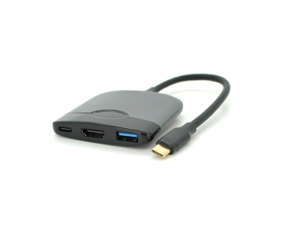 Опис: Кабель Type-C з роз'ємом тато із пластику, з роз'ємами HDMI та USB3.0, а також роз'ємом PD (Power Delivery), довжиною 23 см, чорного кольору.