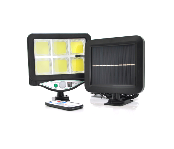 Вуличний ліхтар BK-128-6 із сонячною панеллю та пультом керування, вбудованим акумулятором, кріплення на стіну, 6COB, чорний.
