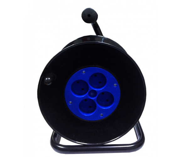 Опис: Котушка для подовжувача до 50м без кабелю на 4 гнізда без заземлювального контакту, контактна група - латунь (Синя)