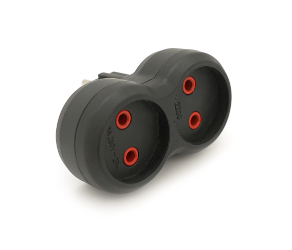 Розетка двійник без заземлення A202В, 2Р, 10А Black, Q15