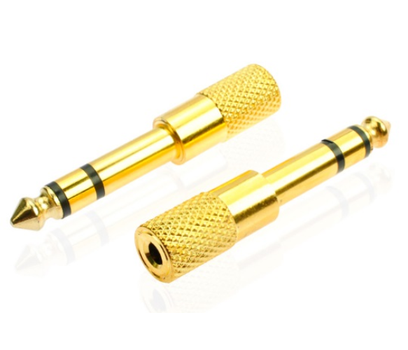 Перехідник Jack 6.3 (тато)/Jack 3.5 (мама) Stereo, Gold, метал, Q100 - це адаптер, що дозволяє підключати пристрої з роз'ємом Jack 6.3 мм до пристроїв з роз'ємом Jack 3.5 мм. Він виконаний у золотистому кольорі із металу.