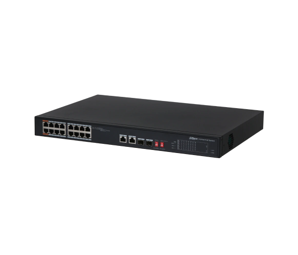 Рівень комутатора L2; Потужність перемикання 7,2 Гбіт/с; Швидкість передачі пакетів 5.3568 мп/с; Буферна пам'ять 4 Мбіт; Розмір таблиці MAC 8K; Порт Ethernet 16; Оптичний порт 2; PoE IEEE802.3af, IEEE802.3at, Hi-PoE; Швидкість порту Ethernet 100 Мбіт/с; Швидкість оптичного порту 1 Гбіт/с; Робоча температура –10°C - 55°C