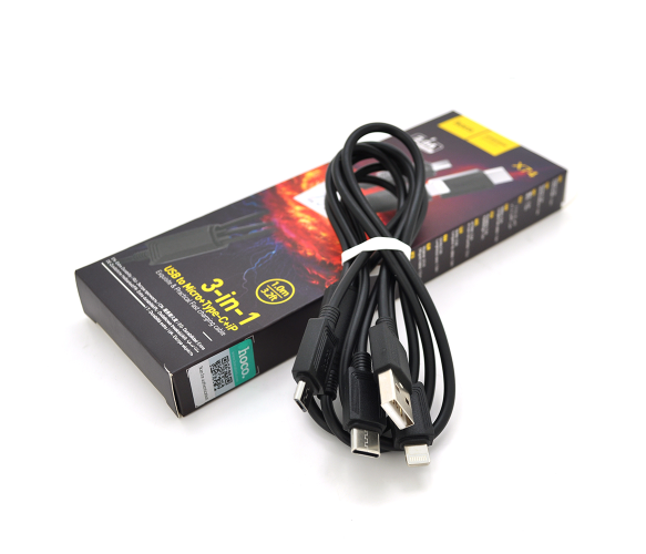 Кабель HOCO X74 USB-1 3 в 1 Micro/iPhone/Type-C є зручним та універсальним рішенням для зарядки та синхронізації пристроїв з різними типами роз'ємів. Він має довжину 1 метр і виконаний у чорному кольорі, що поставляється у зручній коробці.