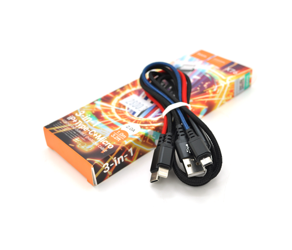 Кабель HOCO X76 USB-1 3 в 1 Micro/Iphone/Type-C призначений для підключення різних пристроїв до джерела живлення. Його універсальний дизайн дозволяє використовувати його з пристроями, оснащеними різними роз'ємами, включаючи Micro, Iphone та Type-C.