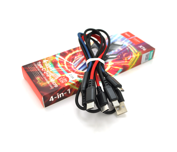 Кабель HOCO X76 USB-1 4 в 1 Micro/iPhone/2*Type-C призначений для підключення різних пристроїв до джерела живлення. Його універсальний дизайн дозволяє використовувати його із пристроями, оснащеними різними роз'ємами, такими як Micro USB, iPhone та Type-C.