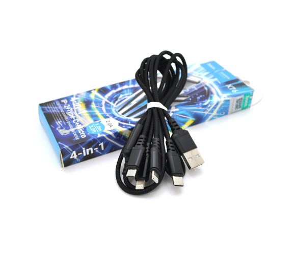 Кабель HOCO X76 USB-1 4 в 1 Micro/2*Iphone/Type-C призначений для підключення пристроїв до джерела живлення або інших пристроїв. Має універсальний дизайн, що підходить для різних типів пристроїв. Довжина кабелю становить 1 метр, що забезпечує зручність використання. Колір - чорний, поставляється у зручній упаковці.