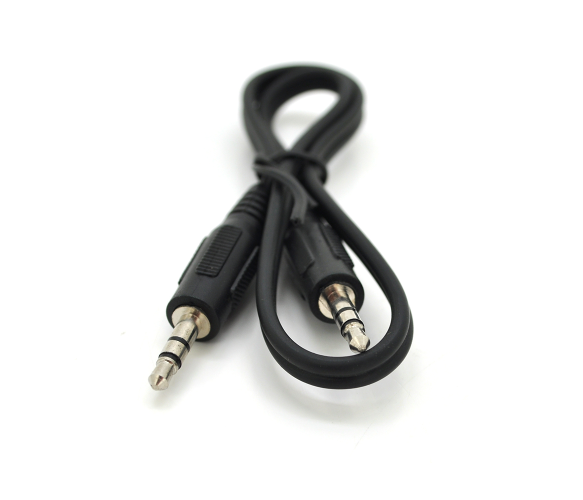 Кабель звукового AUX Audio DC3.5mm з роз'ємами тато-тато довжиною 0,4м, виконаний із золотистого стерео роз'єму (круглий) чорного кольору. Поставляється у пакеті Q500.