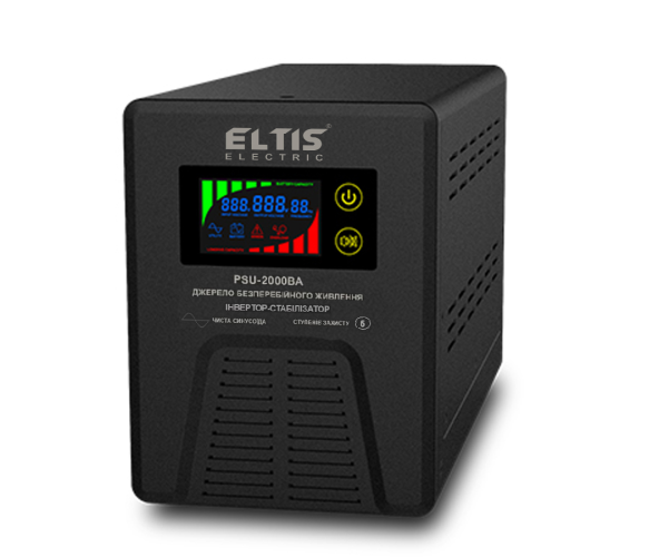 ДБЖ Eltis Electric – це електронний пристрій, котрий керується мікропроцесором, є повністю автоматичним і автономним, який поєднує в собі чотири функції: релейний стабілізатор напруги, пристрій захисту, мережевий фільтр імпульсних завад та джерело резервного живлення, що працюють від зовнішніх (що підключаються) акумуляторів різної ємності. ДБЖ вирішує безліч різних проблем з тимчасовою відсутністю електроживлення, а також неякісного енергопостачання.