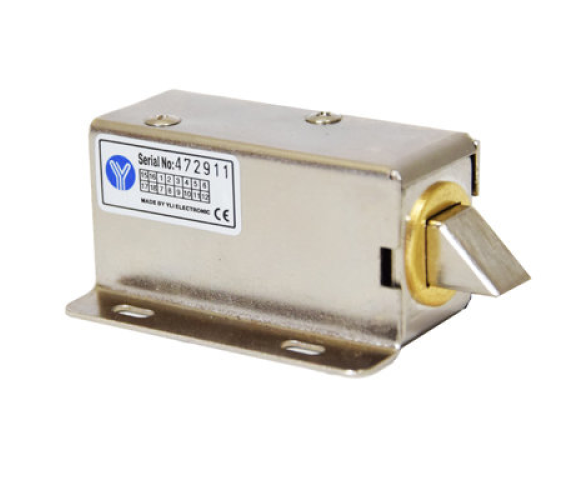 Yli Electronics YE-302A – накладной миниатюрный электромеханический замок, универсальный для установки в торговую мебель, камеры хранения, ящики и шкафы.