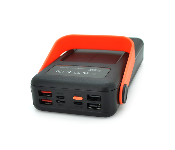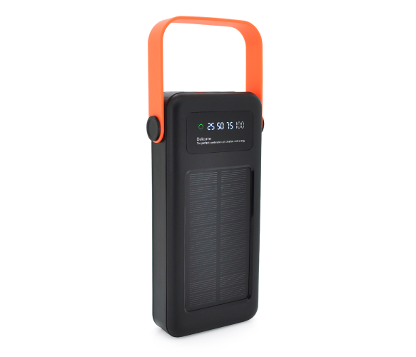 PowerBank має сонячну батарею на лицьовій стороні, яка дозволяє заряджати пристрій без електрики, від сонячного світла чи штучного освітлення.