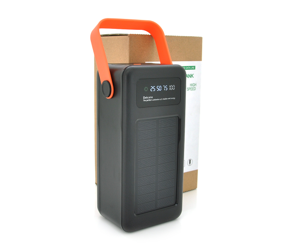 PowerBank має сонячну батарею на лицьовій стороні, яка дозволяє заряджати пристрій без електрики, від сонячного світла чи штучного освітлення.