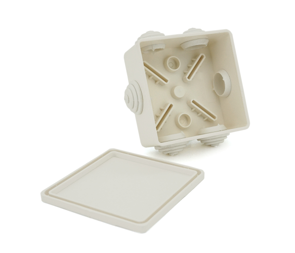 Коробка розподільна, СOURBI 80х80х40 біла з кабельними вводами, IP54 (негорюча)