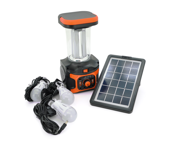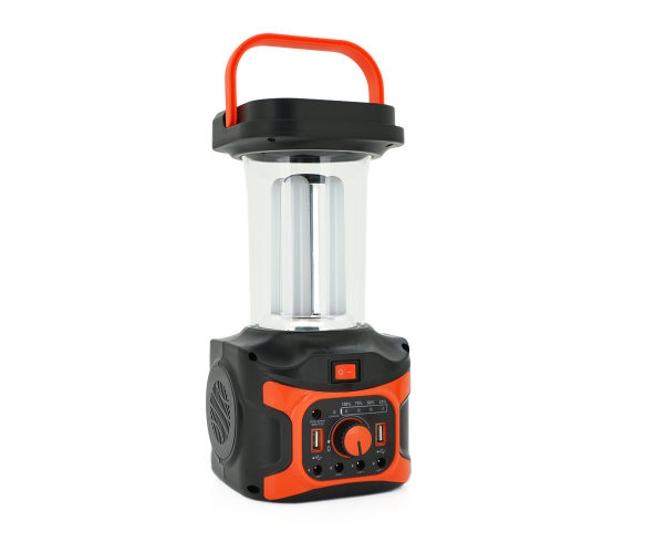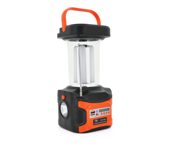 Переносний ліхтар RT911BT+Solar є багатофункціональним пристроєм, який може використовуватися як ліхтар, радіо та Bluetooth колонка. Він оснащений вбудованим акумулятором і має USB вихід для заряджання інших пристроїв. Ліхтар має 3 лампочки потужністю 3W і доступний у чорно-оранжевому кольорі.