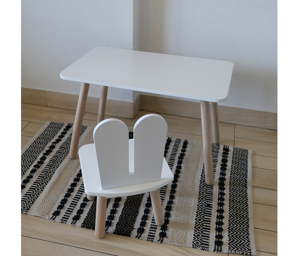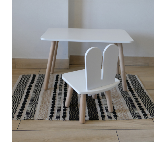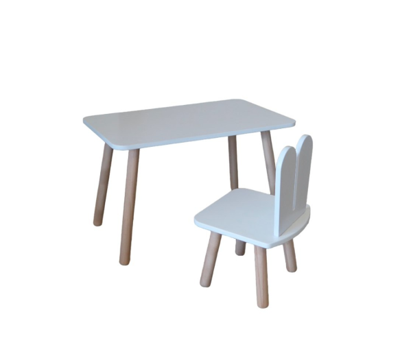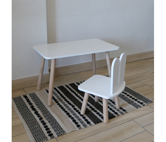 Комплект стіл та стілець дитячий - Voltronic Set Стіл білий прямокутний + стілець білий Зайчик (ФАНЕРА)