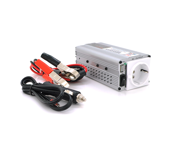 Інвертор напруги Mervesan MSI-300-12 – використовується для перетворення електрики 12В на 220В. Дозволяє підключати навантаження 300Вт. Максимальне пікове навантаження на прилад складає 900 Вт. Попереду розташовані розетка, кнопка увімк./викл, а також USB роз'єм для зарядки ваших гаджетів. На звороті пристрою, клем для підключення проводів акб.
