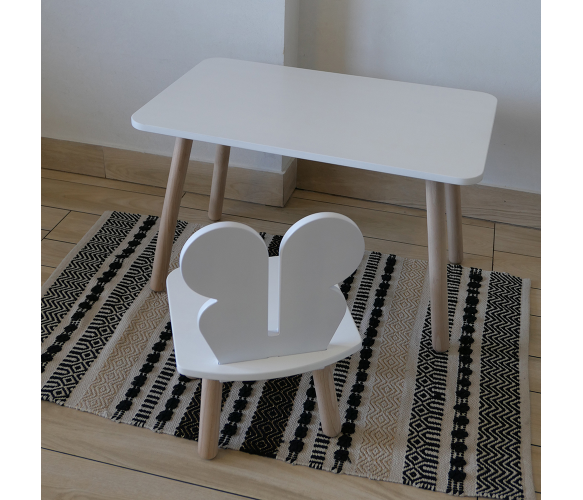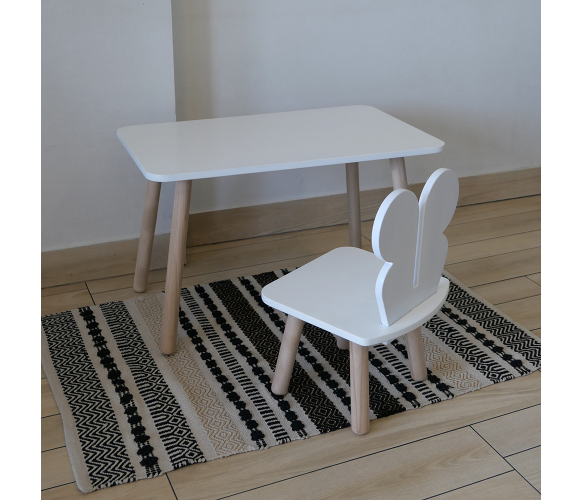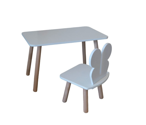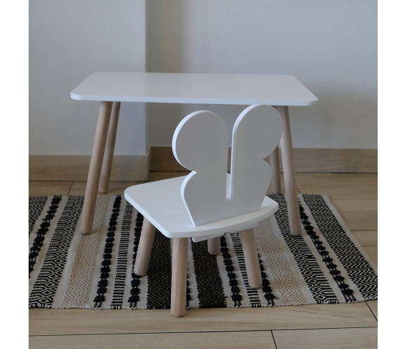 Комплект стіл та стілець дитячий - Voltronic Set Стіл білий прямокутний + стілець білий Метелик (ФАНЕРА)