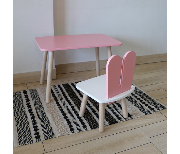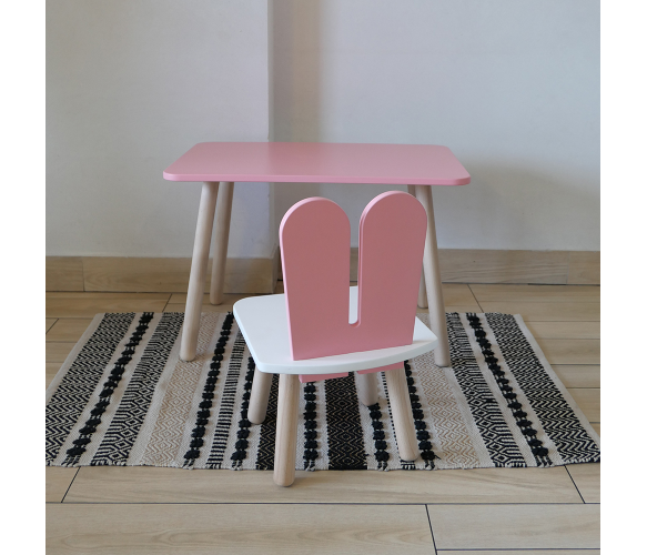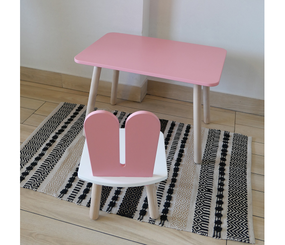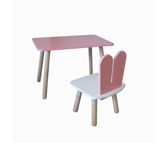 Комплект стіл та стілець дитячий - Voltronic Set Стіл рожевий прямокутний + стілець рожевий Зайчик (ФАНЕРА)