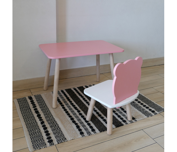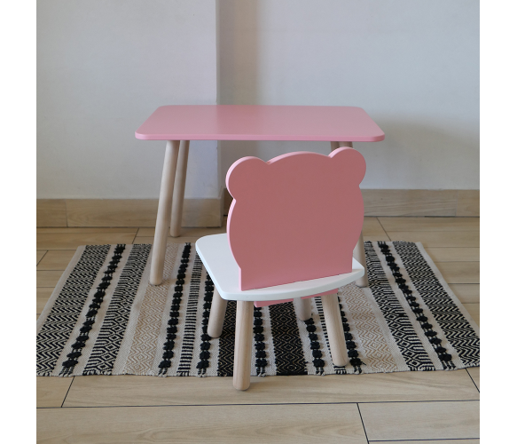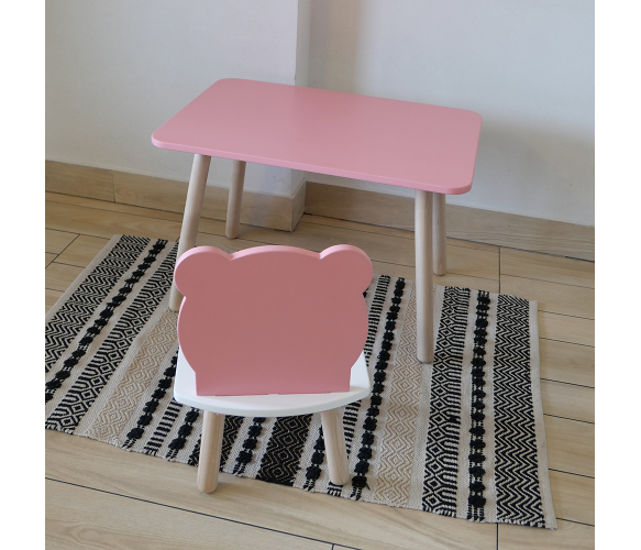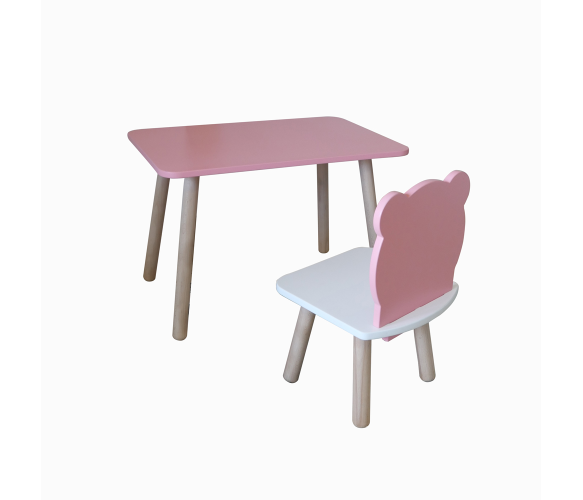 Комплект стіл та стілець дитячий - Voltronic Set Стіл розовий прямокутний + стілець розовий Медведик (ФАНЕРА)