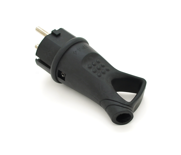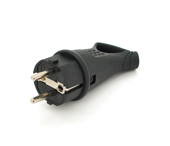 Вилка каучукова із заземленням чорного кольору. Корпус виготовлений із каучуку, що дає додатковий захист від вологи.