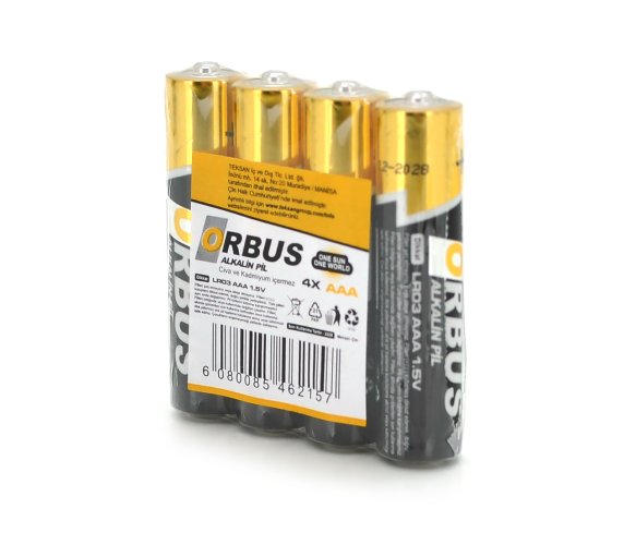 Батарейка лужна Orbus 1.5V AAA / LR03, 4 штуки shrink