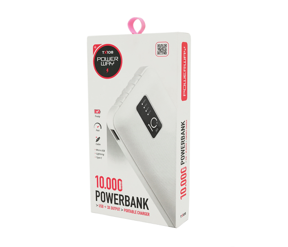 Powerbank TX-108 10000mAh – це зовнішній зарядний пристрій із стильним, компактним дизайном та зарядним кабелем у комплекті.