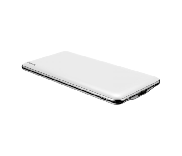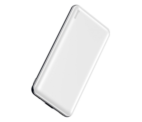 PowerBank Baseus Simbo 10000mAh виконаний з приємного на дотик пластику. Основною його перевагою є корпус компактних розмірів, який легко поміщається в руку і не займає багато місця в сумці або рюкзаку. На бічній настилі розміщені спеціальні індикатори, які повідомлять про рівень заряду, що залишився.